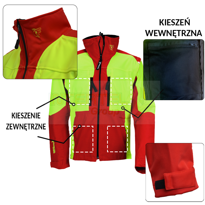 Kurtka łączy w sobie wyjątkowy komfort i wysoką funkcjonalność. Wysoka stójka skutecznie chroni szyję i kark przed wiatrem. Liczne praktyczne kieszenie: dwie na piersiach, zapinane na suwak, dwie po bokach u dołu kurtki oraz jedna wewnętrzna pozwalają na bezpieczne przechowywanie niezbędnych narzędzi i drobiazgów. Dodatkowo mankiety z regulacją za pomocą rzepów umożliwiają idealne dopasowanie do indywidualnych potrzeb użytkownika.