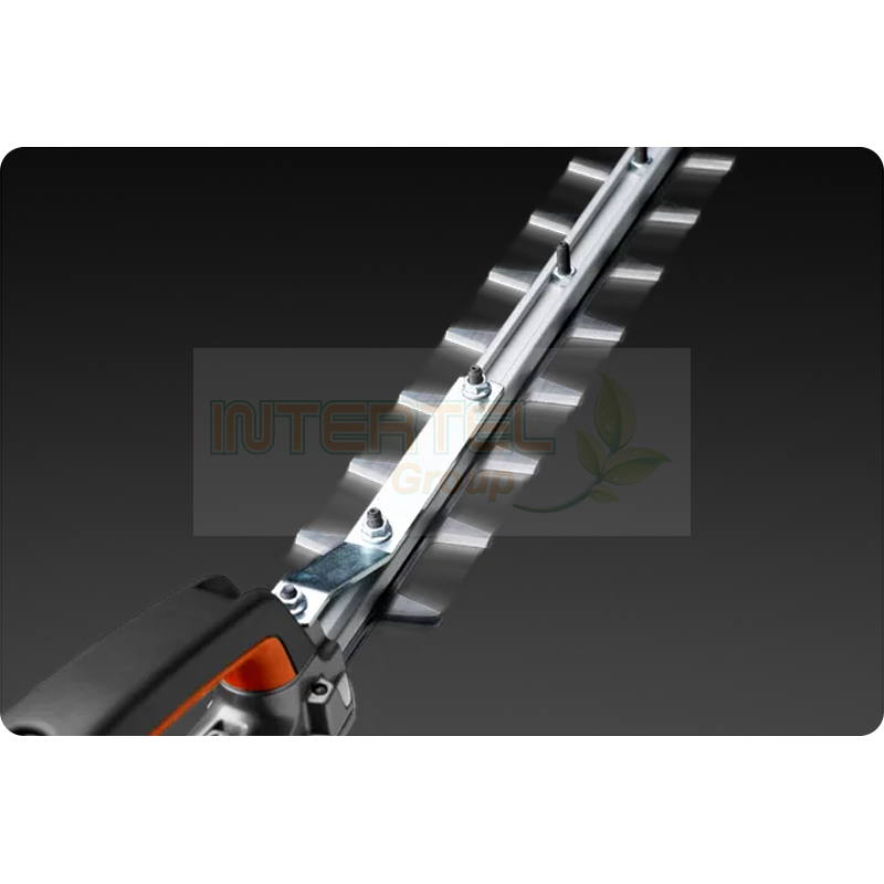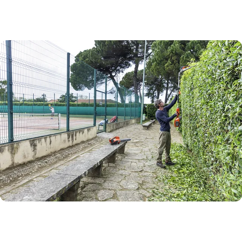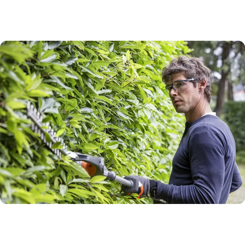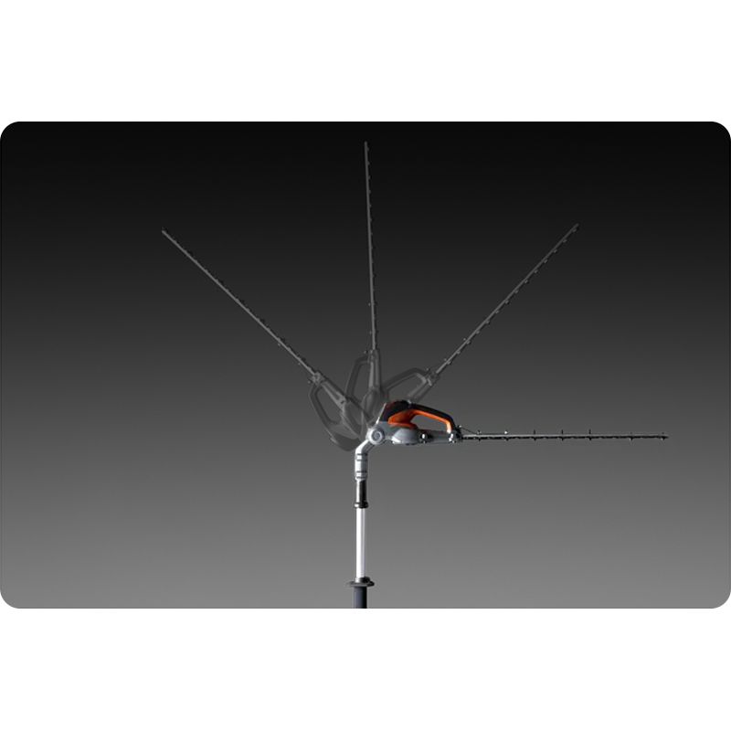 Regulacja kąta cięcia zapewnia ergonomiczną pozycję pracy podczas pielęgnacji zarówno wysokich jak i niskich żywopłotów.