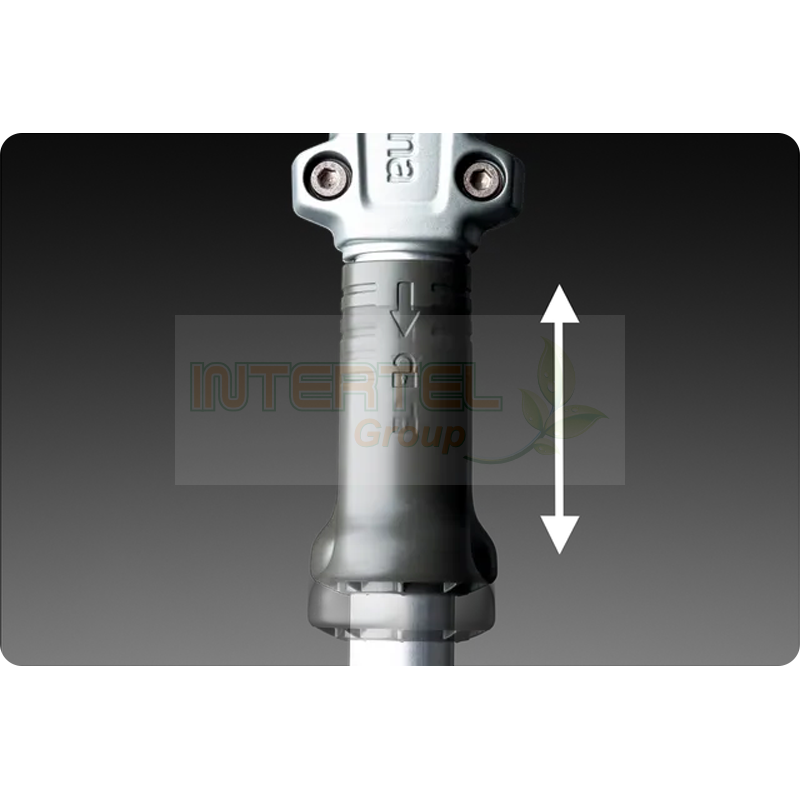 Duży zasięg dla zwiększenia wydajności. Listwa tnąca może być ustawiona pod różnymi kątami w stosunku do wału, dzięki czemu można ciąć górny poziom stojąc na ziemi.