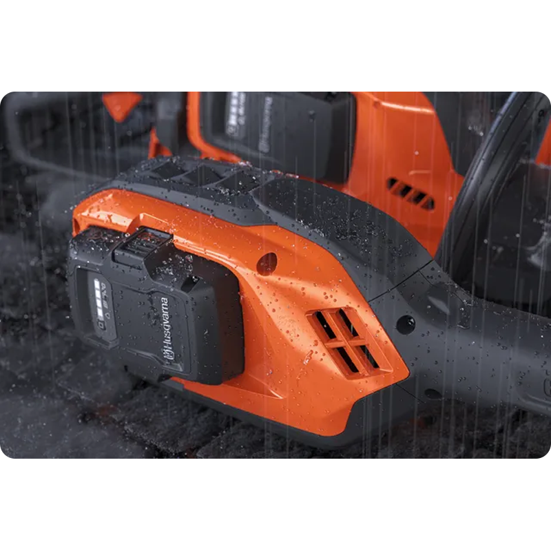 Ta maszyna akumulatorowa Husqvarna posiada klasyfikację IPX4 w zakresie odporności na deszcz. Dzięki temu jest to trwała i niezawodna i może pracować przez cały rok w każdych warunkach pogodowych.