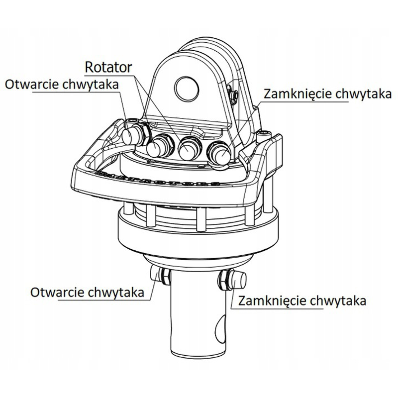 Dzięki nieograniczonej rotacji urządzenie umożliwia precyzyjne operacje załadunku i rozładunku takich materiałów jak drewno, złom, surowce wtórne, materiały budowlane oraz sypkie. Funkcjonalne przyłącza robocze pozwalają na efektywną kontrolę obrotu oraz operacji otwierania i zamykania chwytaka. Rotator jest uniwersalny w montażu, pasuje do większości dostępnych na rynku żurawi.