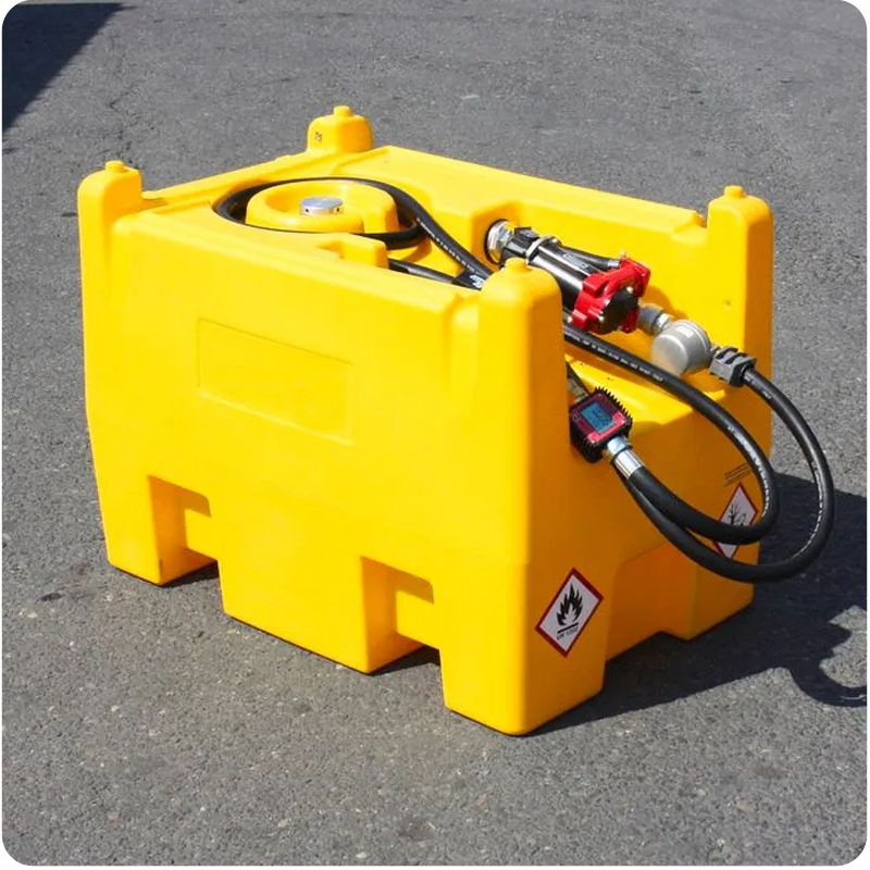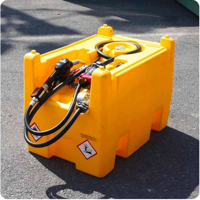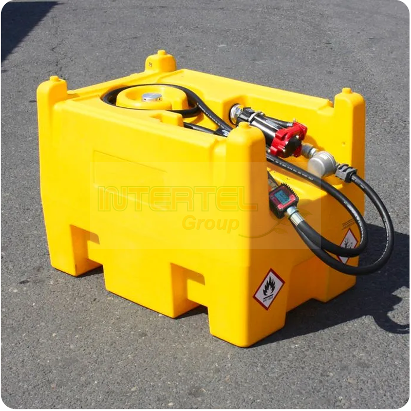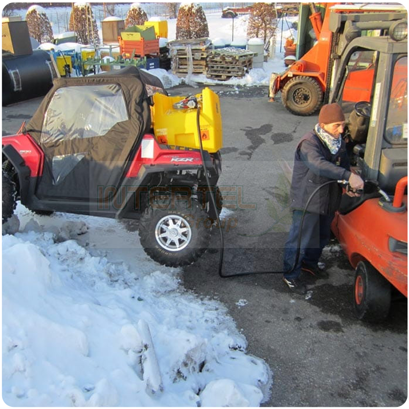 Zbiornik posiada korek napełniania oraz odpowietrznik, które gwarantują płynne i bezproblemowe napełnianie zbiornika. Dołączony przenośny agregat paliwa zwiększa mobilność i elastyczność użytkowania. Zbiornik posiada zintegrowane kieszenie przystosowane do wózków widłowych, które ułatwiają jego transport. Zintegrowane wgłębienia z kołem zapadkowym zapewniają bezpieczne umocowanie pasa podczas transportu. Dodatkowo zbiornik wyposażony jest w łatwy do odczytu licznik.