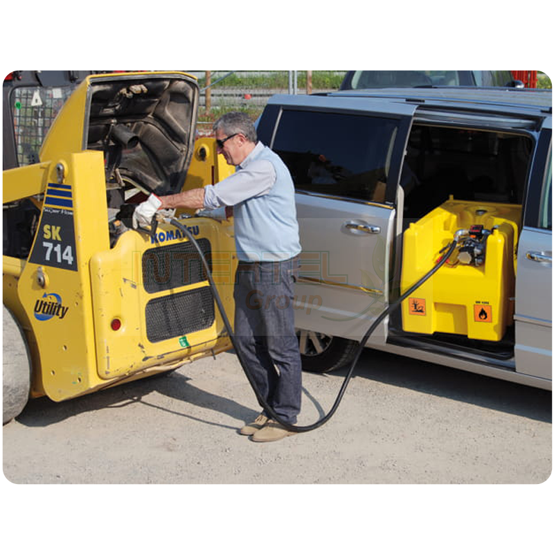 Zbiornik jest wyposażony w pompę paliwa o napięciu 12 V, która zapewnia natężenie przepływu wynoszące 40 litrów na minutę. Do zestawu dołączony jest przewód elektryczny o długości 4 metrów oraz zaciski do podłączenia do akumulatora. Zbiornik posiada antystatyczny, gumowy wąż o długości 4 metrów oraz automatyczną dyszę paliwa.