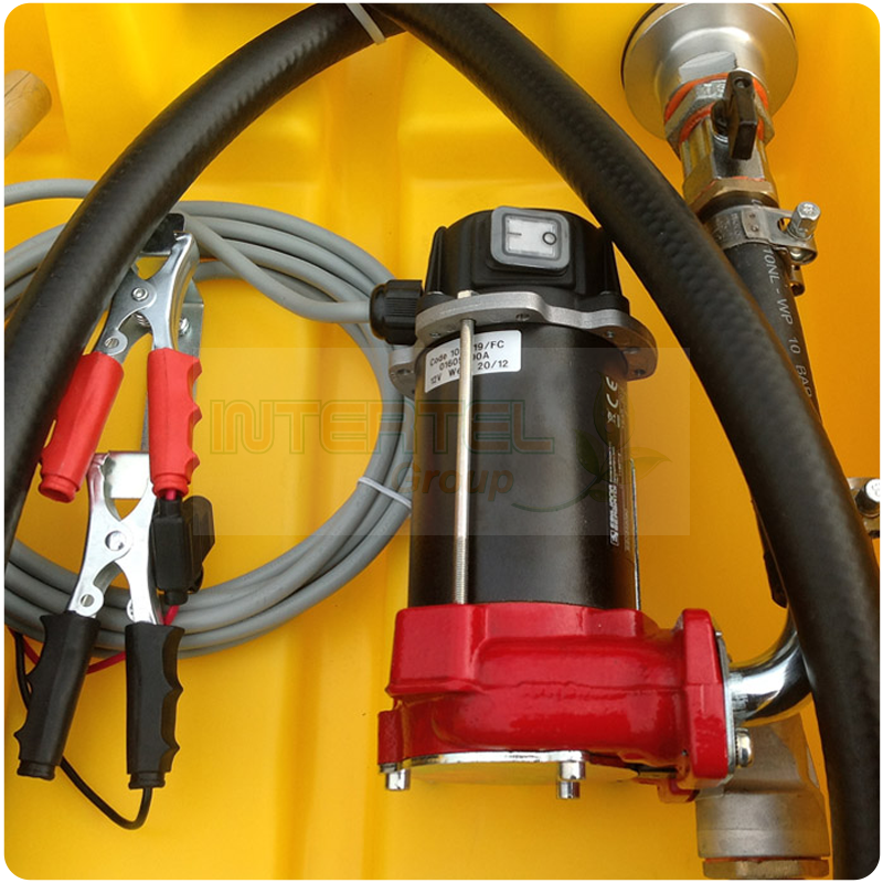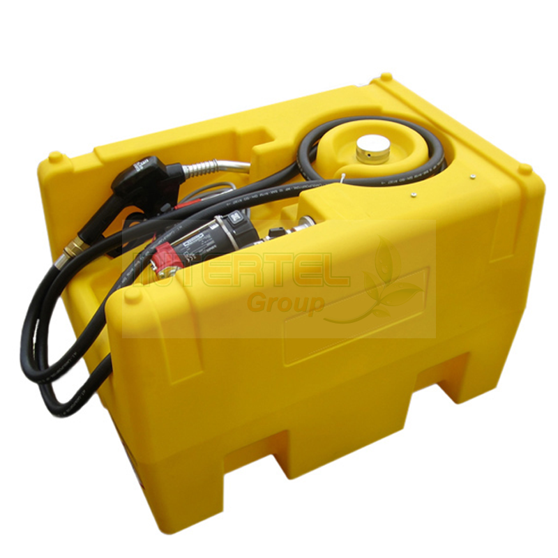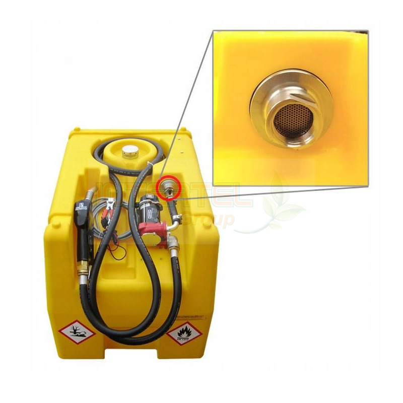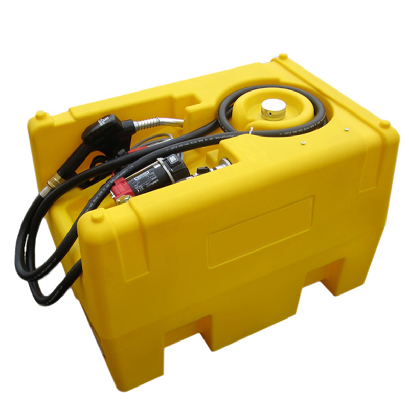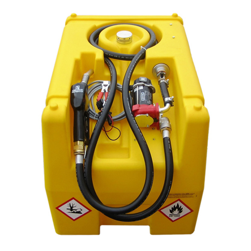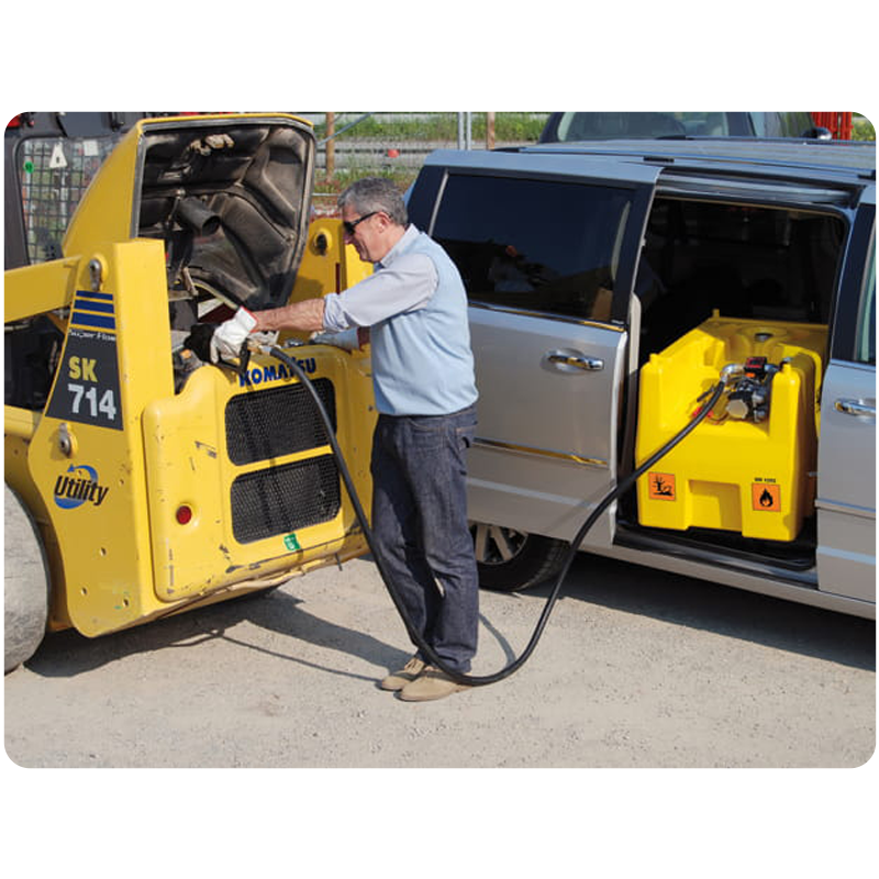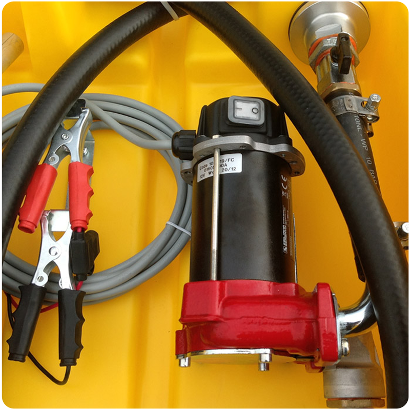 Zbiornik jest wyposażony w pompę paliwa o napięciu 12 V, która zapewnia natężenie przepływu wynoszące 40 litrów na minutę. Do zestawu dołączony jest przewód elektryczny o długości 4 metrów oraz zaciski do podłączenia do akumulatora. Zbiornik posiada antystatyczny, gumowy wąż o długości 4 metrów oraz automatyczną dyszę paliwa.