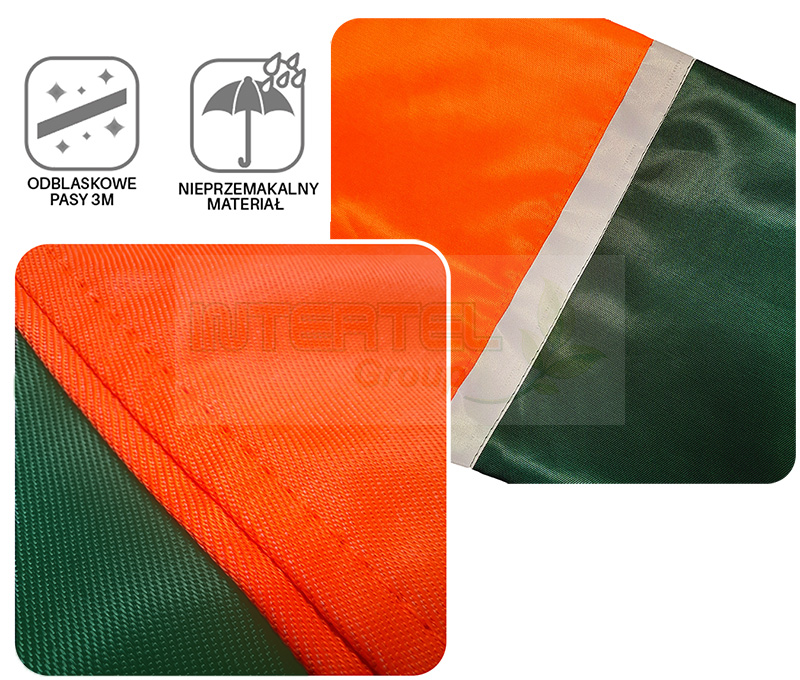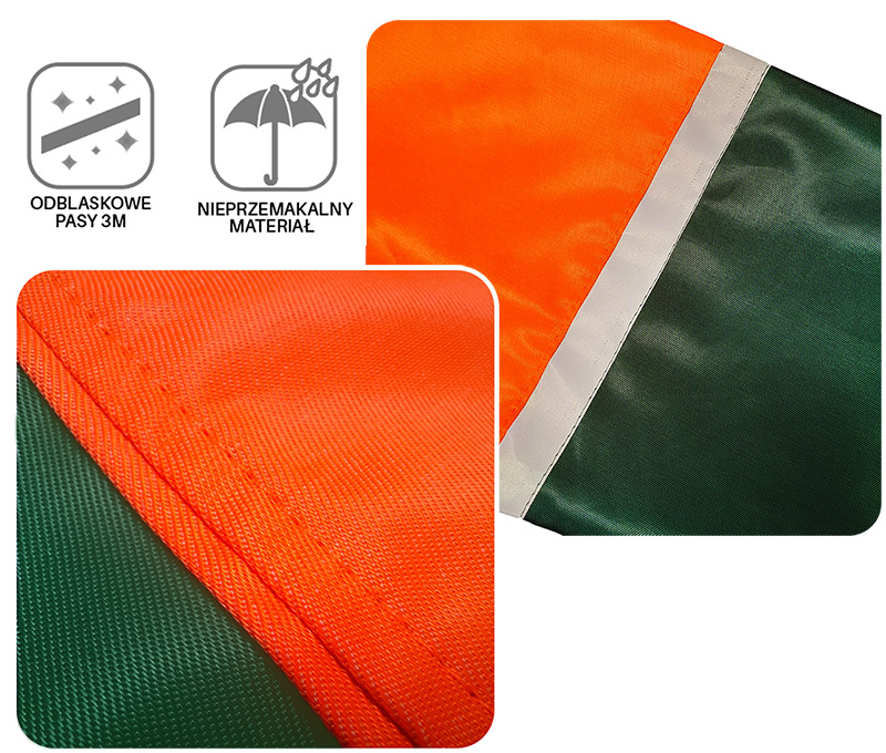 Kurtka wykonana z beavera (50%) i nylonu (50%). Beaver to materiał nieprzemakalny o wysokiej odporności na uszkodzenia mechaniczne. Nylon natomiast dodaje kurtce lekkości i elastyczności, co przyczynia się do większej wygody noszenia. Na rękawach kurtki zostały naszyte odblaskowe taśmy 3M, które zwiększają widoczność.