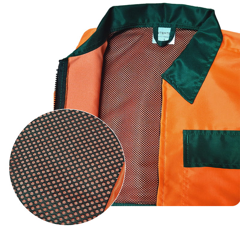 Siatka na plecach znacząco podnosi komfort noszenia. Dzięki siatce możliwa jest swobodna cyrkulacja powietrza wokół ciała użytkownika. Dodatkowo przedłużony tył, zapewnia większą ochronę pleców. Dając poczucie bezpiecznej i komfortowej pracy.